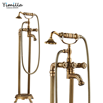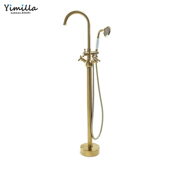 Gold Polished Floor-standing Bathtub Shower Mixer Rain Spray Single Handle Modern Design Ceramic Faucets Copper Bathtub Faucet